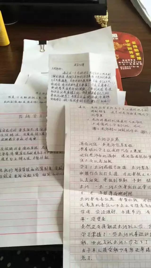 最近,小编获得几张学员的出纳心得体会,我们一起来看看,对于出纳这个岗位的学习,他们有什么不一样的心得呢?